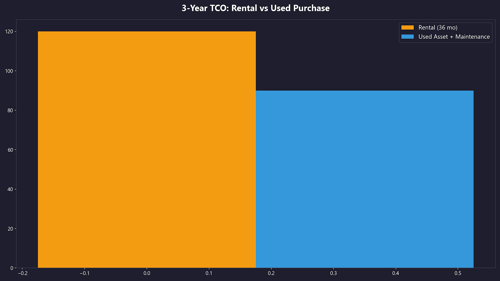 TCO Chart Miete vs Gebrauchtkauf über 3 Jahre